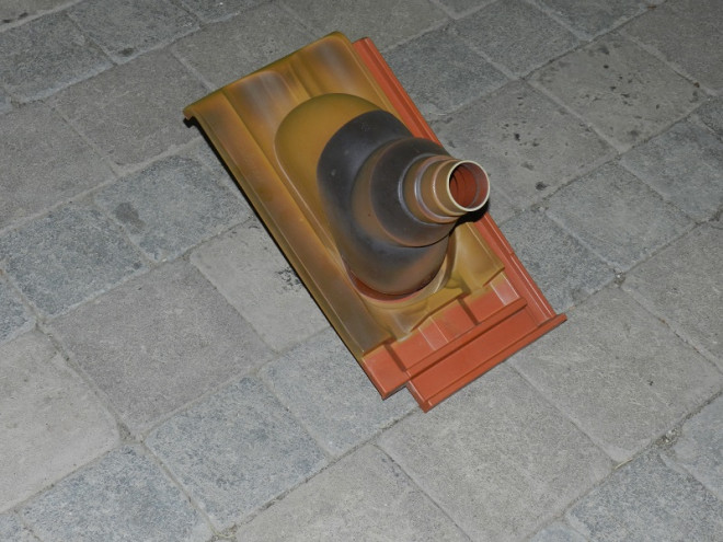 klöber dachdurchführung für antennen-mast. bestehend aus: antennen-haube und grundplatte. ca.41 cm lang & ca. 23 cm breit 40 talente.