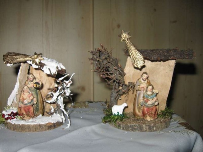 Meine Krippen sind nur 10 cm groß,teilweise mit Schnee. Figuren aus Wachs,Polystrol od. Gießkeramik